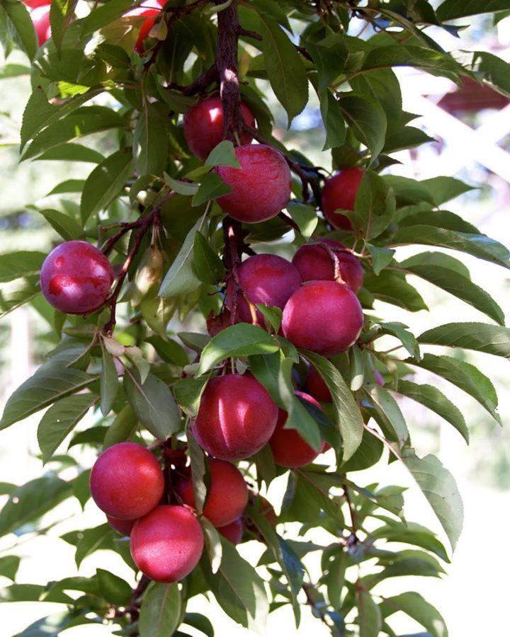 Внешне дерево напоминает сливу с аналогичными листьями и шипами. Плоды этого сорта имеют темно-фиолетовый, почти черный цвет и несколько крупнее обычной сливы, достигая массы до 100 г. Форма плодов больше напоминает абрикос. Мякоть плодов розово-красная с желтыми прожилками, обладает сладким и сочным вкусом, напоминающим смесь персика и абрикоса. Спелые плоды напоминают абрикос, а недозрелые – сливу, что позволяет наслаждаться их вкусом в любом состоянии зрелости. Даже не полностью созревшие плоды остаются сладкими с минимальной кислотностью.
